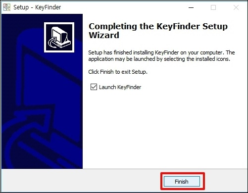 설치가 완료되면 완료 안내 화면이 표시됩니다. 마침 버튼을 클릭하십시오 Keyfinder 프로그램이 시작됩니다.