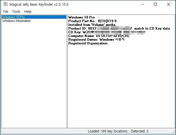 keyFinder라는 프로그램을 사용하여 Windows 제품 키를 쉽게 확인할 수 있는데요
