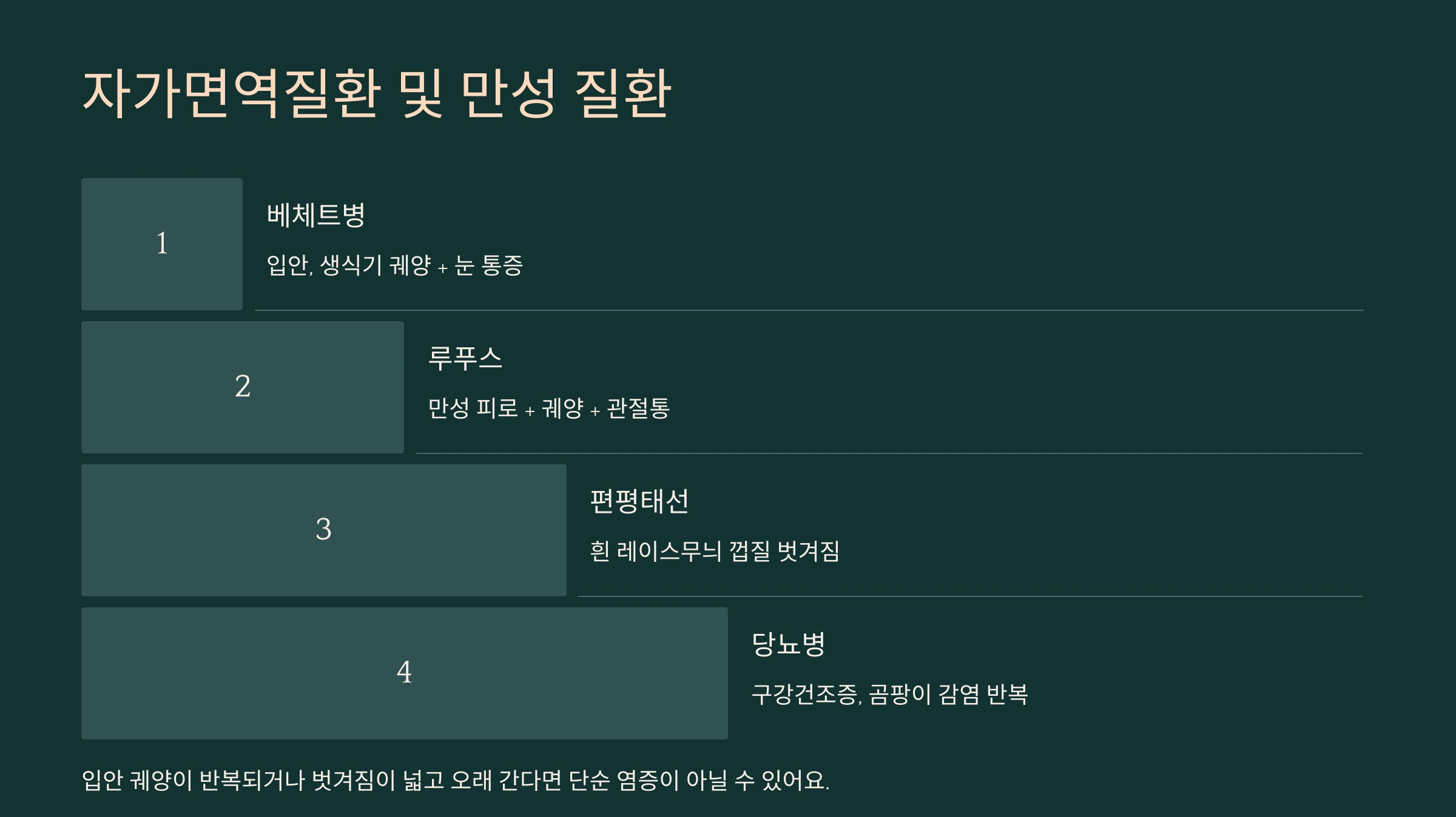 입안 궤양이 반복되거나 벗겨짐이 넓고 오래 간다면, 단순 염증이 아닐 수도 있어요.