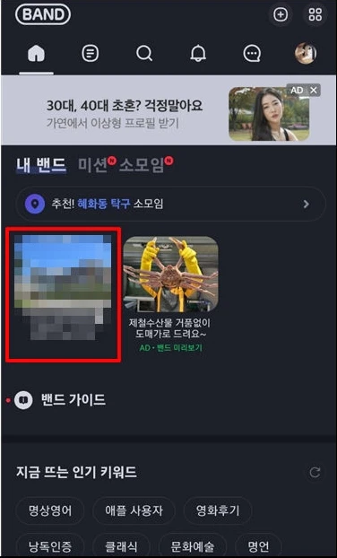 밴드에서 탈퇴하려면 먼저 홈 화면에서 나가고 싶은 밴드를 선택하세요.