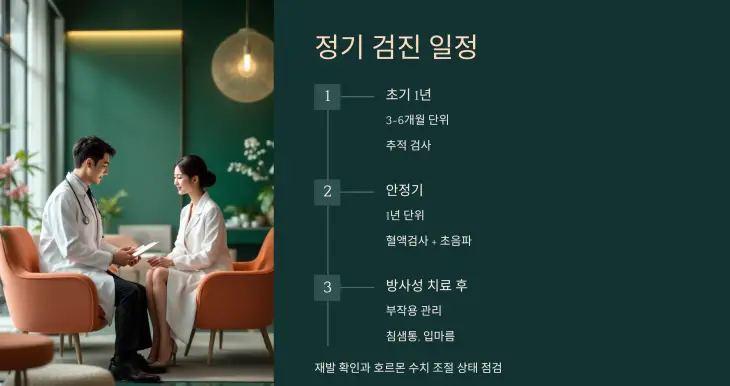 정기적인 검진은 재발 여부뿐 아니라 호르몬 수치 조절 상태도 함께 확인하는 중요한 과정입니다.