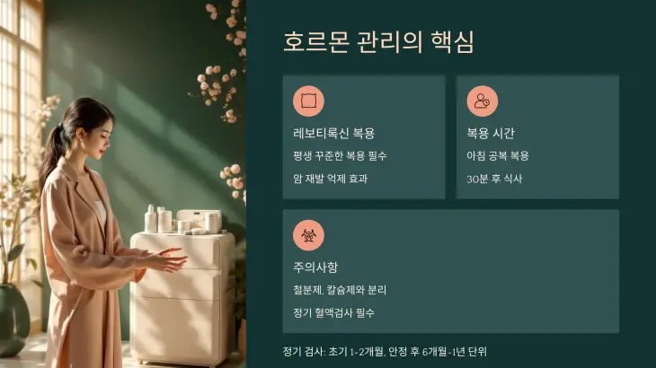 갑상선암 수술 후 가장 중요한 부분 중 하나는 호르몬 보충제 복용 및 수치 관리입니다.