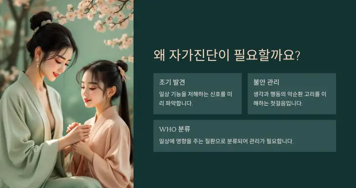 오늘 제공한 자가진단 체크리스트를 기준으로 스스로 어떤 패턴이 나타나고 있는지 한번 점검해보면 큰 도움이 될 거예요.