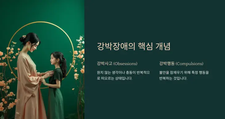 부정적인 생각이 끊임없이 떠오르고, 그 불안을 줄이기 위해 특정 행동을 반복하게 되는 것이 특징입니다.