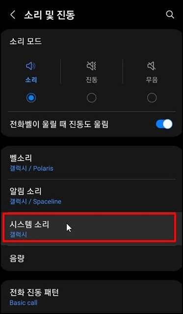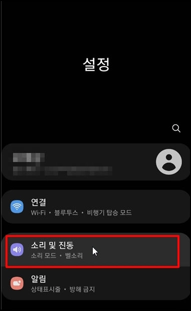- 소리 및 진동 설정으로 이동