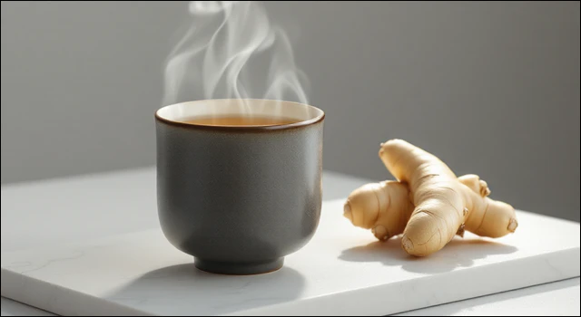 5️⃣ 속이 불편할 때는 소화에 좋은 따뜻한 차(생강차, 국화차) 마시기