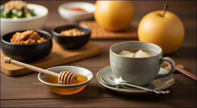 따뜻하게 데운 배즙이나 꿀배차로 즐기면 효과가 배가됩니다.