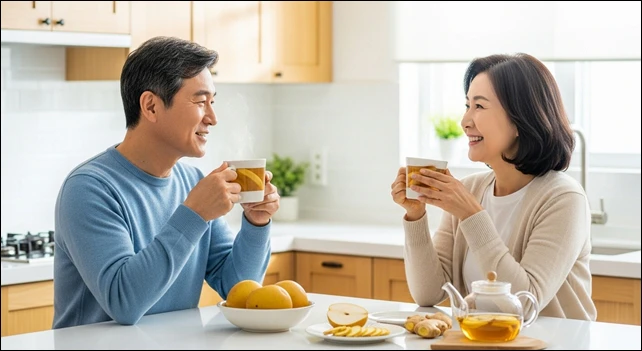 | 간식 | 따뜻한 생강꿀차 + 아몬드 한 줌 |