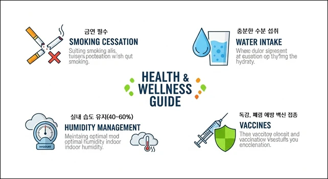 - 면역력 강화: 규칙적인 수면, 균형 잡힌 식사, 금연
