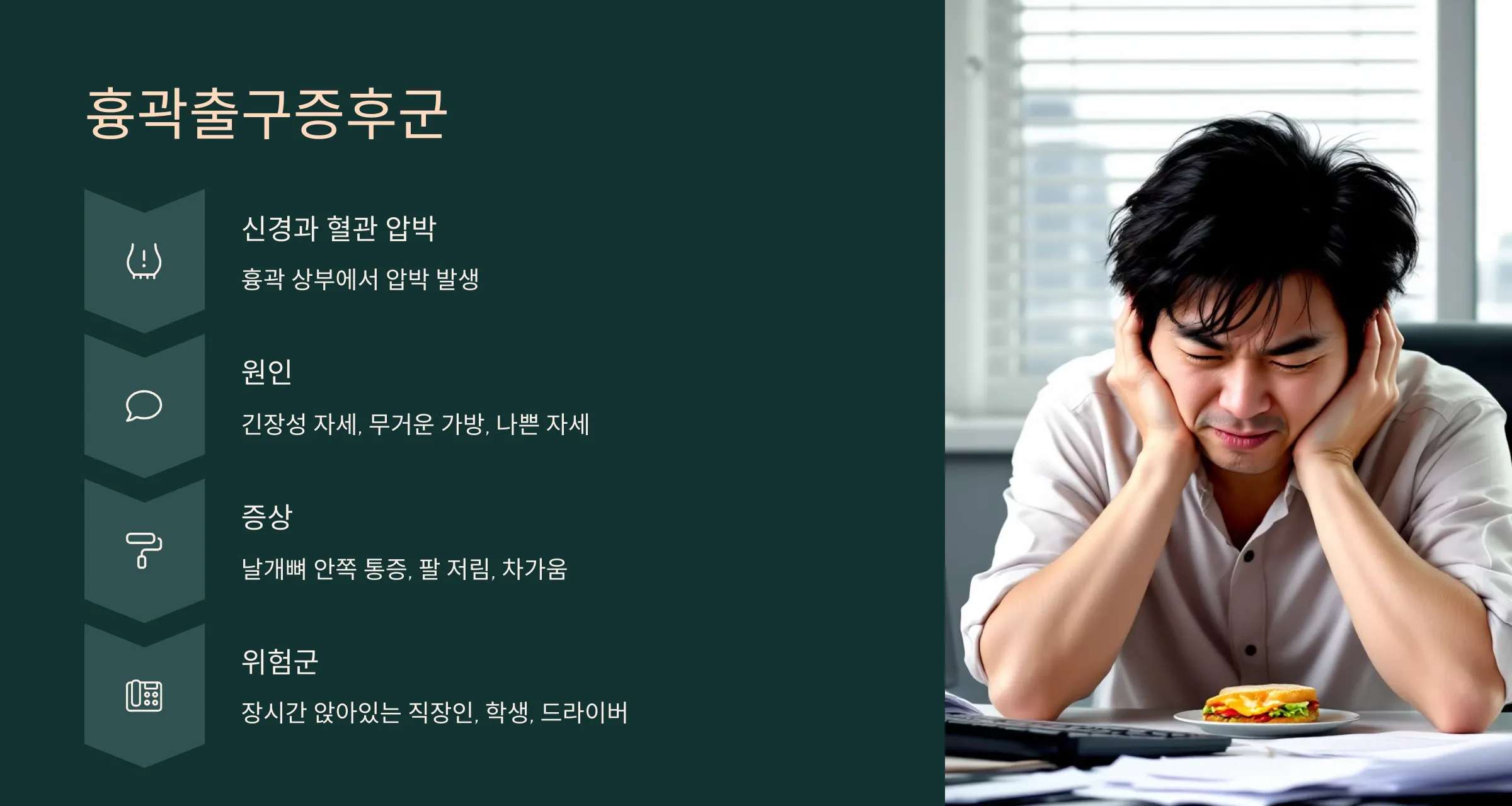 흉곽 상부에서 신경과 혈관이 압박되며 나타나는 증상입니다.