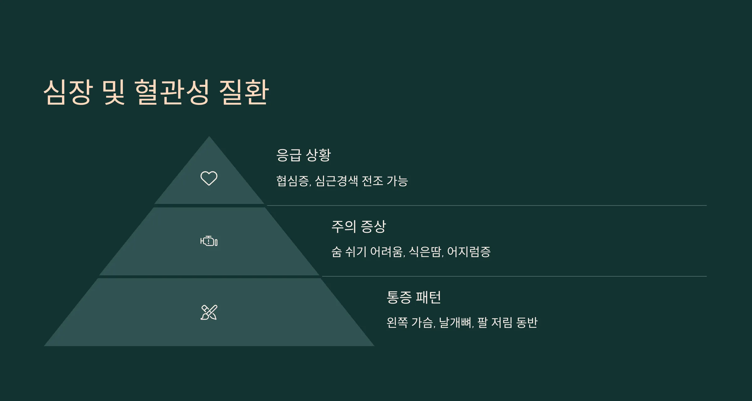 📌 협심증, 심근경색의 전조일 수 있으므로, 해당 증상은 응급입니다.