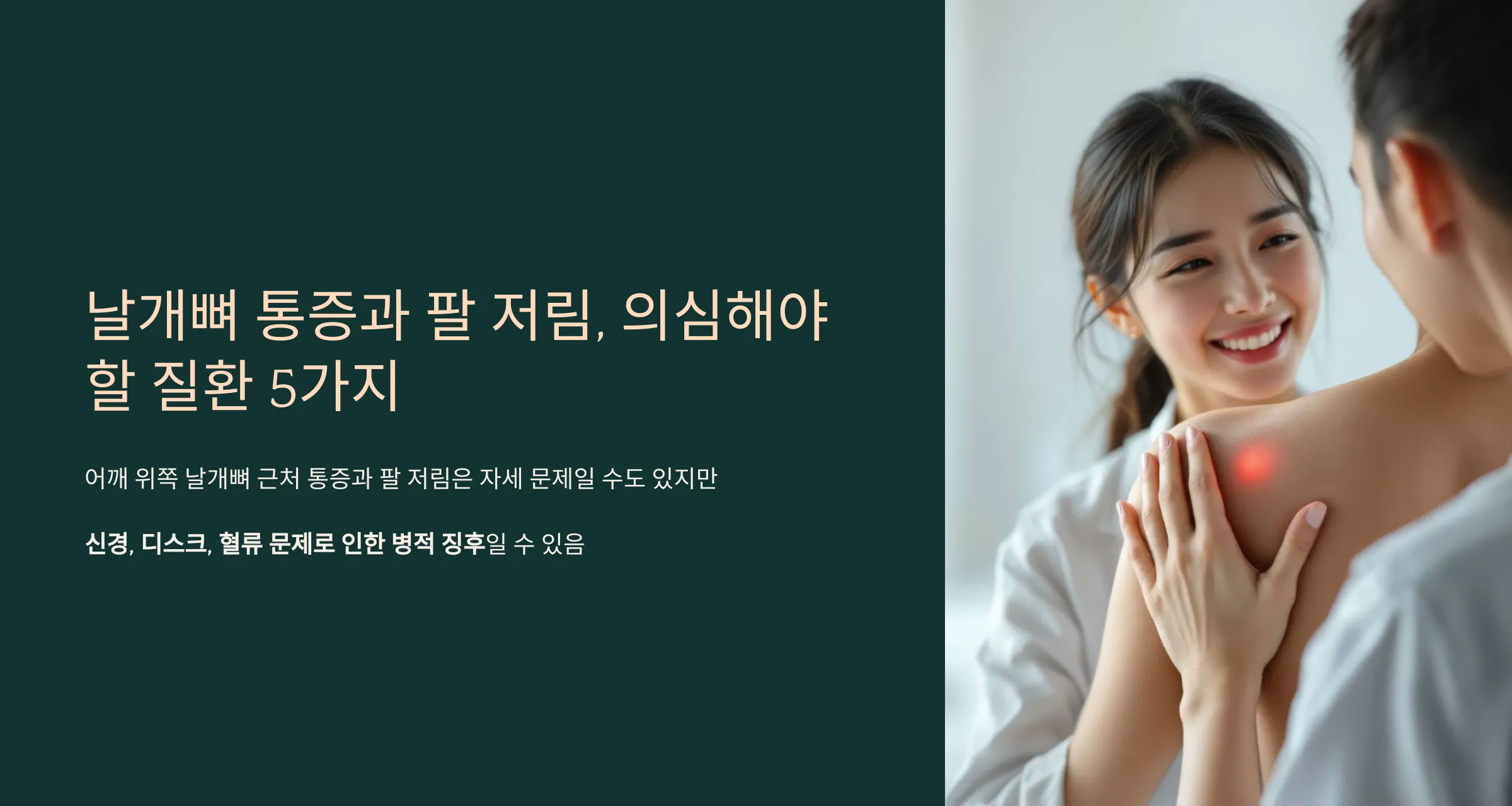 오늘은 날개뼈 통증이 팔 저림으로 이어질 때 의심할 수 있는 대표적인 5가지 질환을 소개해드릴게요.