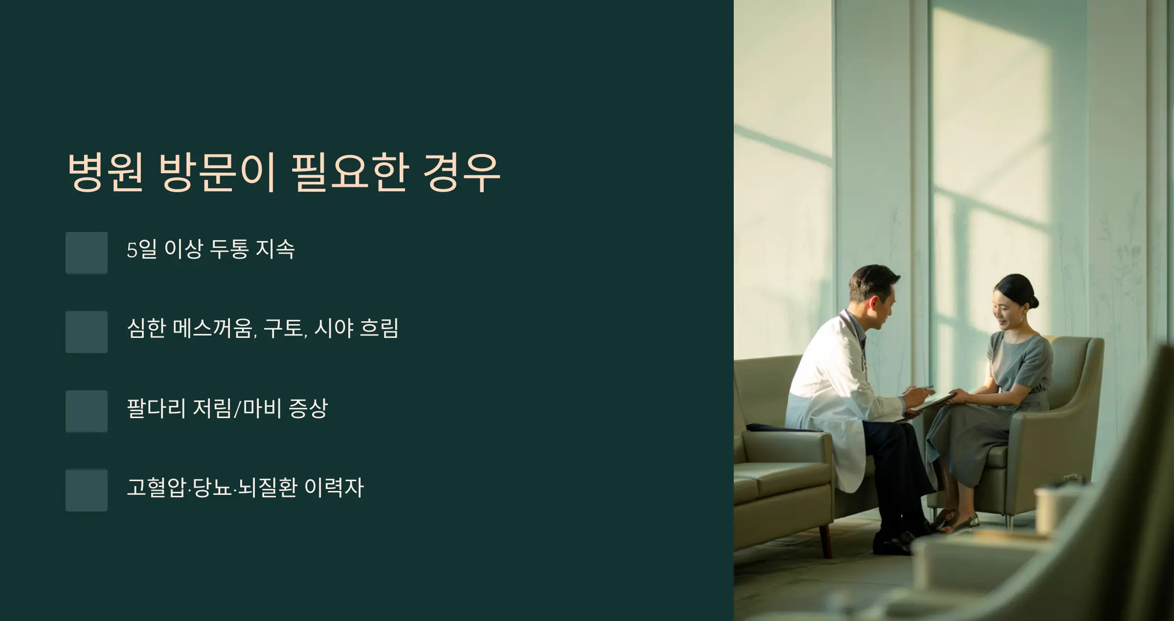 - 5일 이상 두통이 개선되지 않는 경우