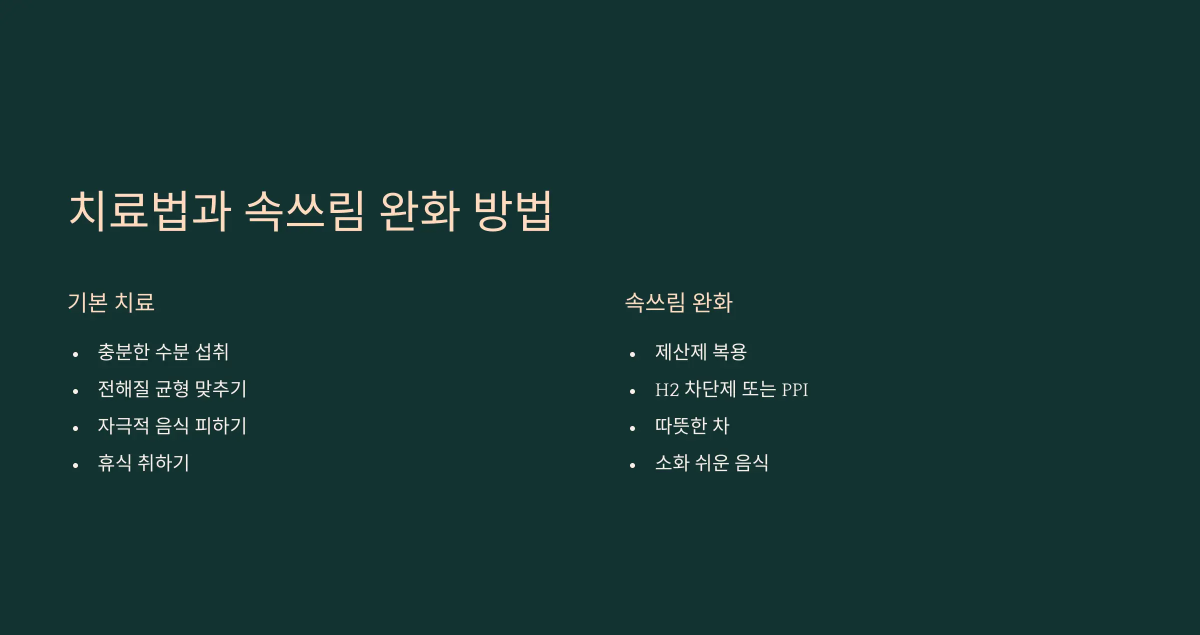 - 속쓰림은 특이하지만, 진단에서 중요한 단서가 될 수 있어요.