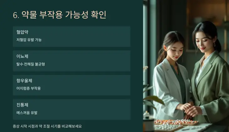 증상이 시작된 시점이 ‘약 조절 이후’와 겹친다면 약물 부작용을 의심해볼 수 있어요.