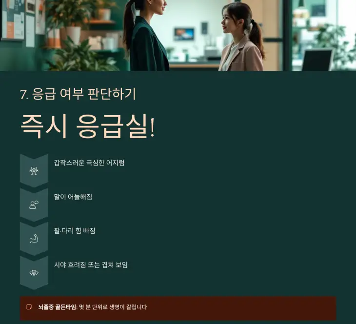 이런 신호는 뇌졸중·뇌혈관 문제의 가능성이 있어 몇 분 단위로 골든타임이 갈립니다.