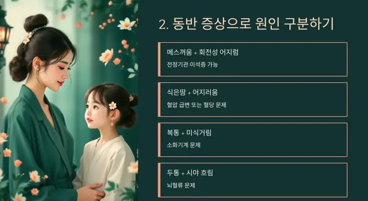 속 미식거림과 어지럼증에는 여러 동반 신호가 함께 나타납니다.