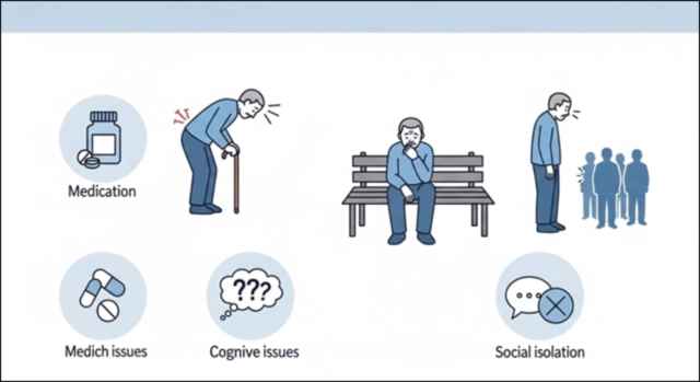 노인 우울증은 다음과 같은 신체적·심리적·환경적 요인이 복합적으로 작용해 발생합니다.