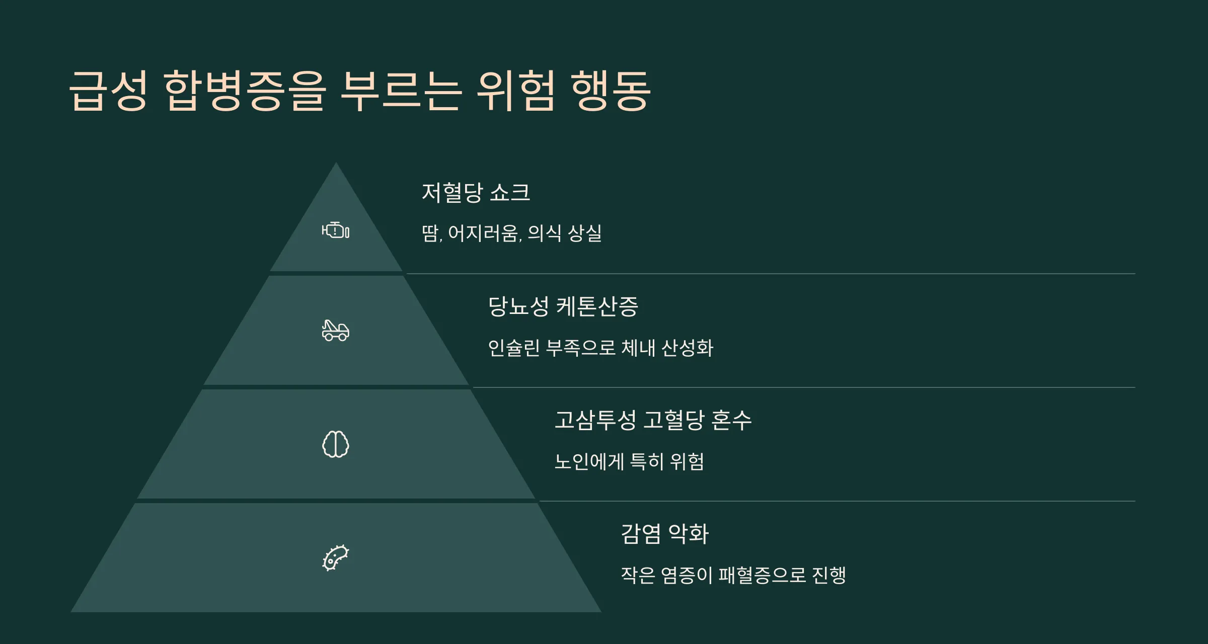 - ⚠️ 저혈당 쇼크: 땀이 나고 어지럽고, 심하면 의식 상실