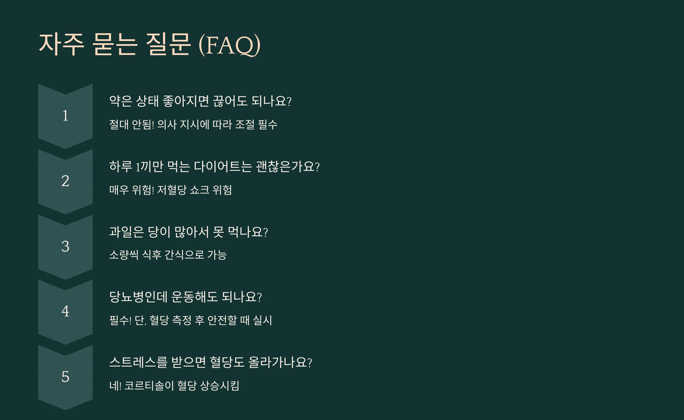 A. 절대 안 됩니다! 약은 의사의 지시에 따라 조절해야 하며, 임의로 끊으면 심각한 고혈당이 발생할 수 있어요.