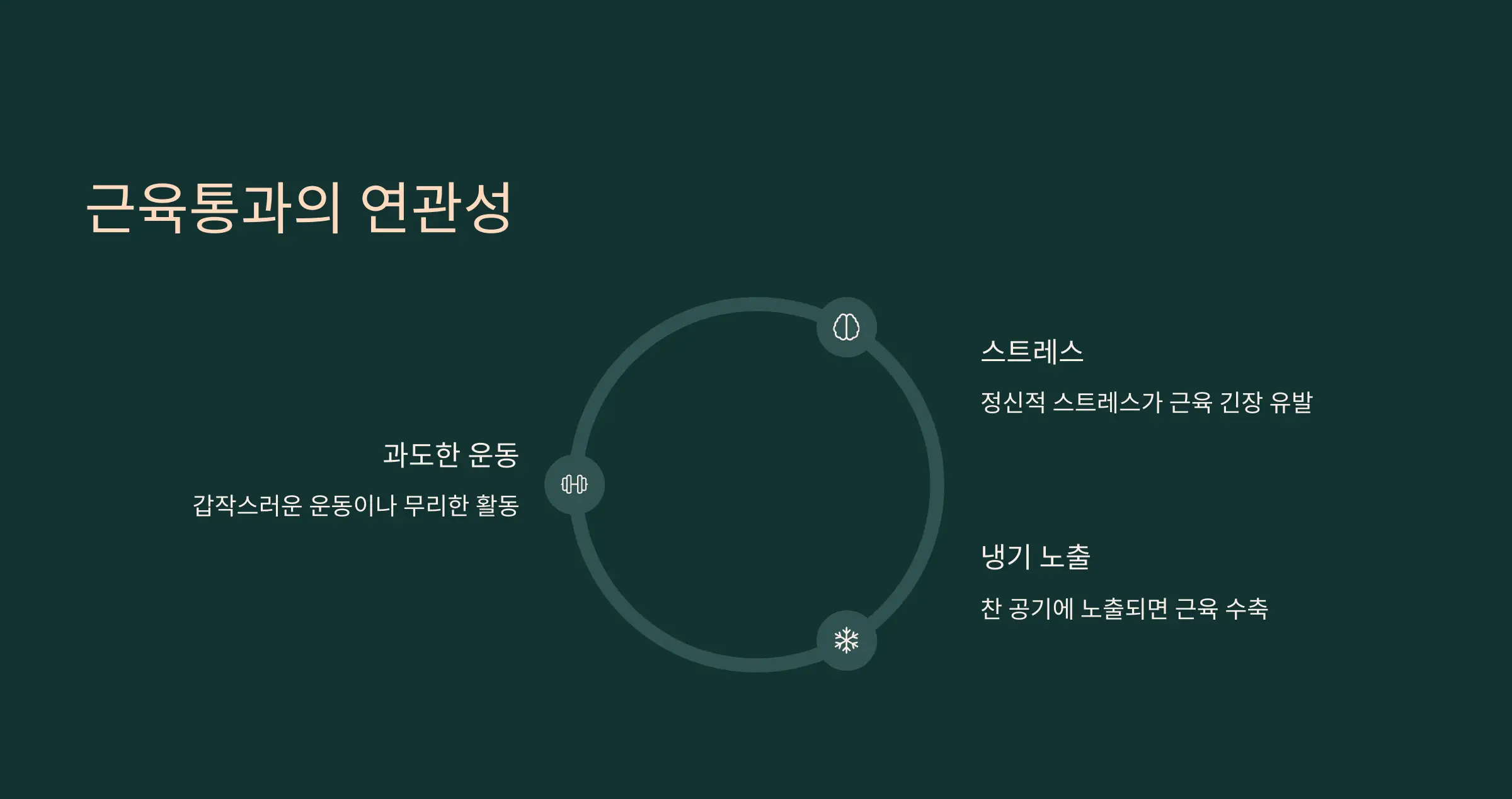 - 냉기 노출: 찬 공기에 노출되면 근육이 수축되어 통증이 발생할 수 있습니다.