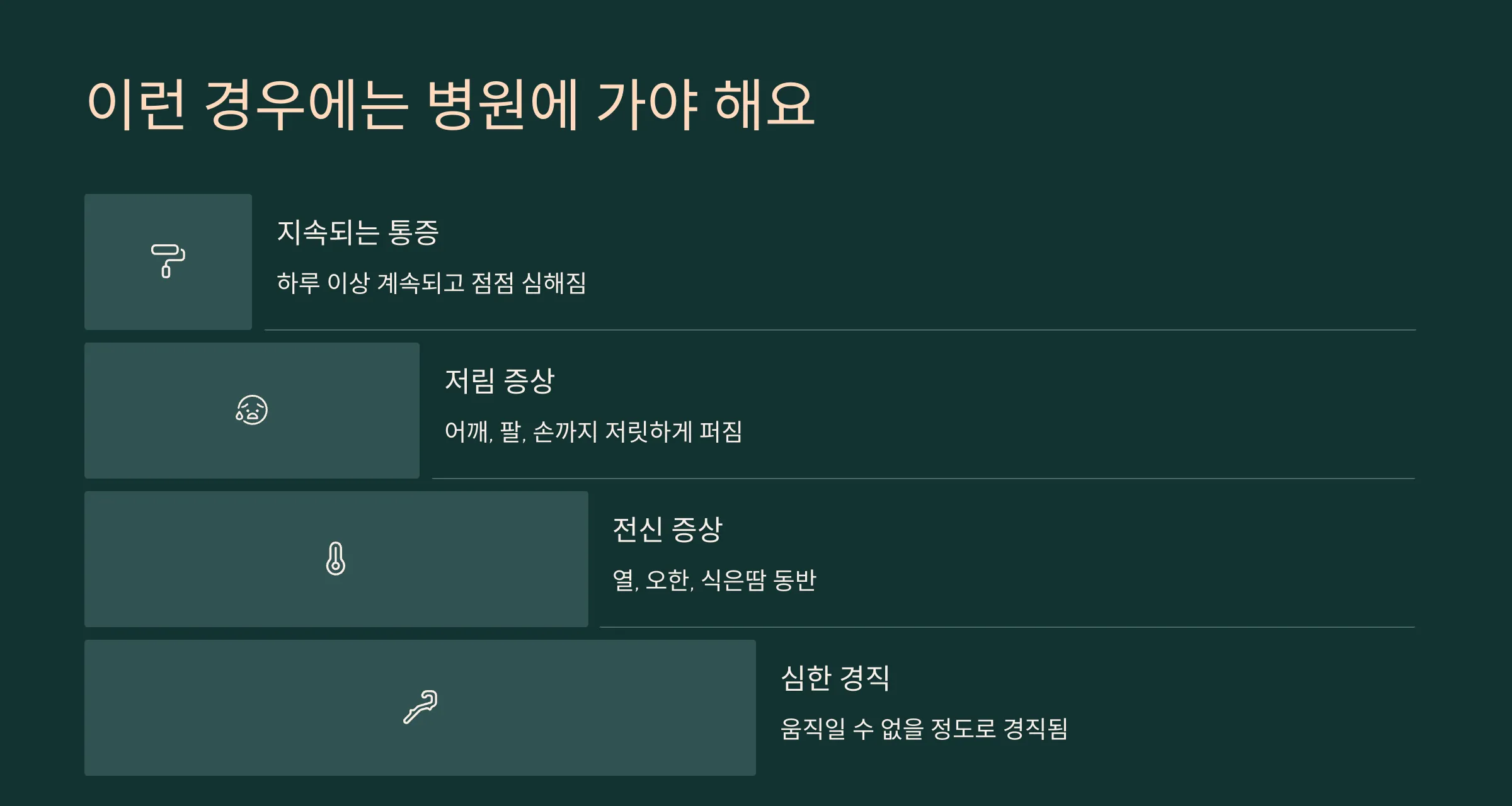 ➡️ 특히 열이 나거나, 팔/다리로 저림이 갈 경우