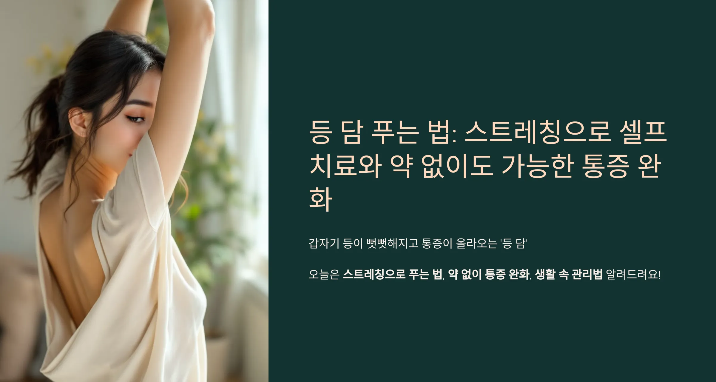 오늘은 등 담 증상이 생겼을 때 스트레칭으로 푸는 법, 약 없이 통증을 완화하는 방법, 그리고 생활 속 관리법까지 자세히 알려드릴게요!