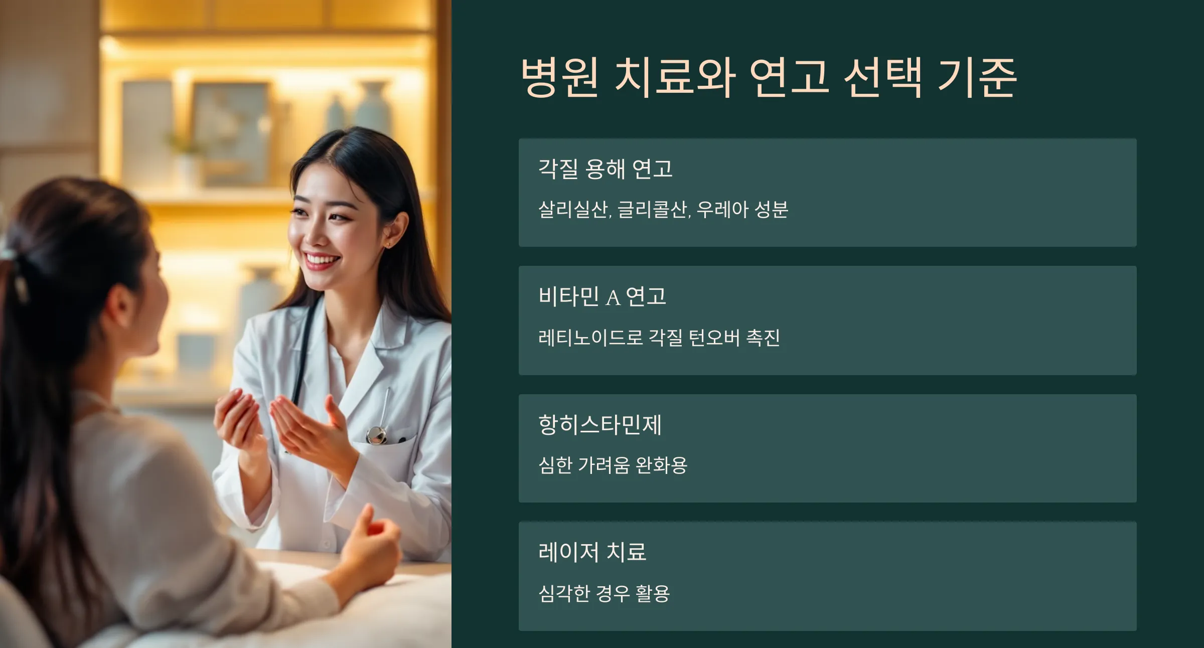 피부과에서는 다음과 같은 치료를 권장하고 있어요: