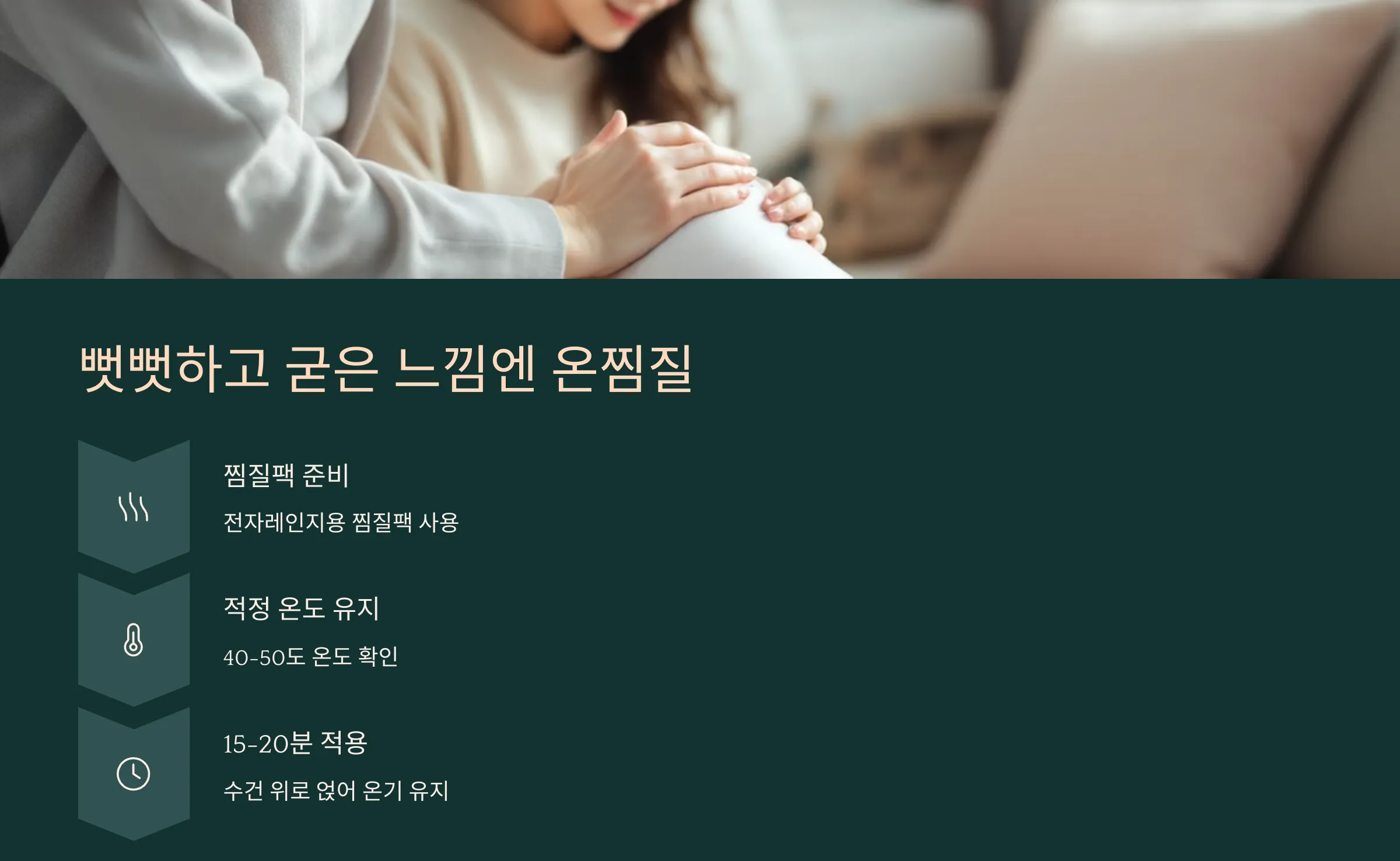 - 온찜질 후 가벼운 스트레칭 병행 시 효과 ↑