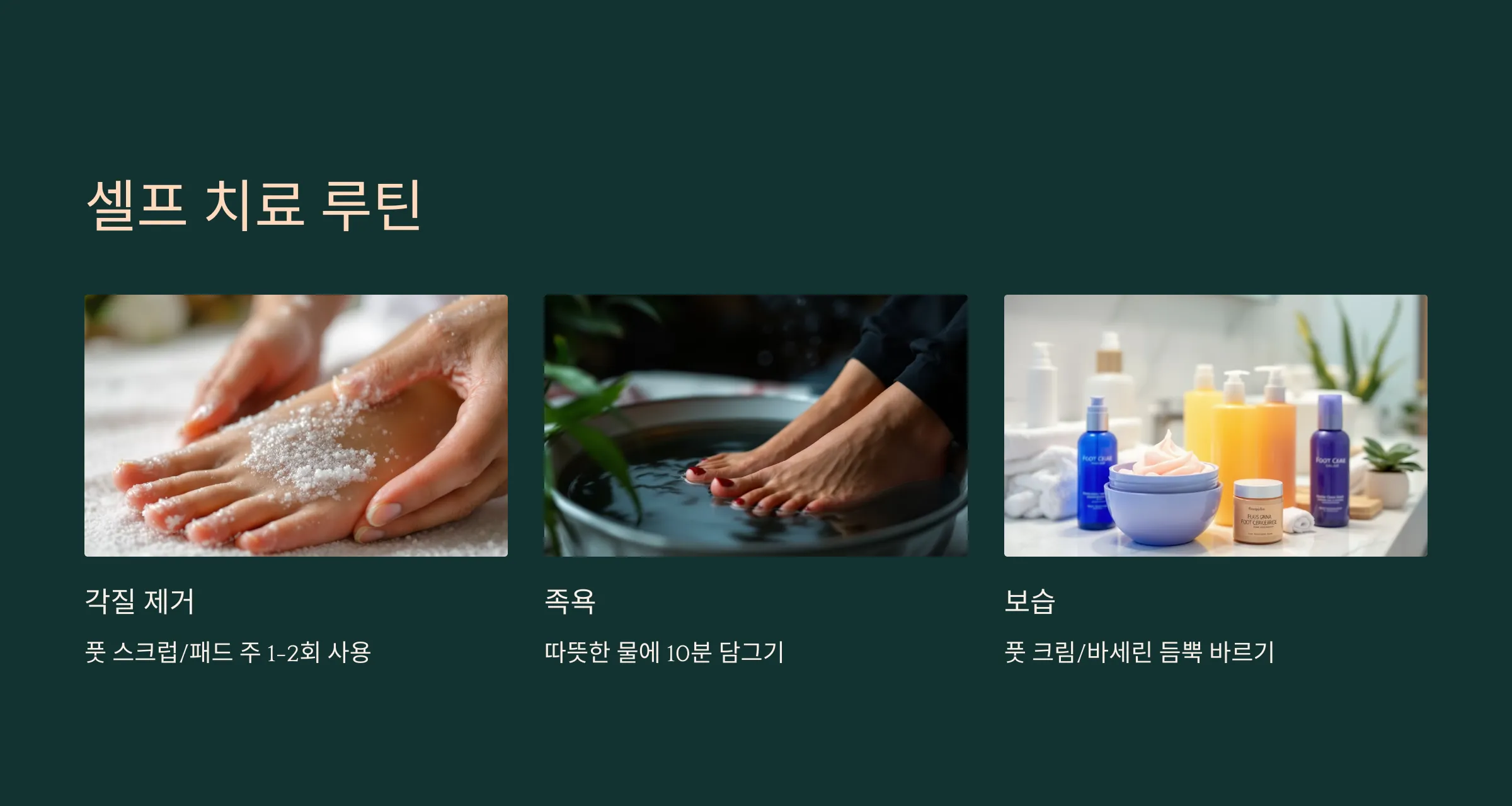 - 따뜻한 물 족욕: 하루 10분, 각질 부드럽게