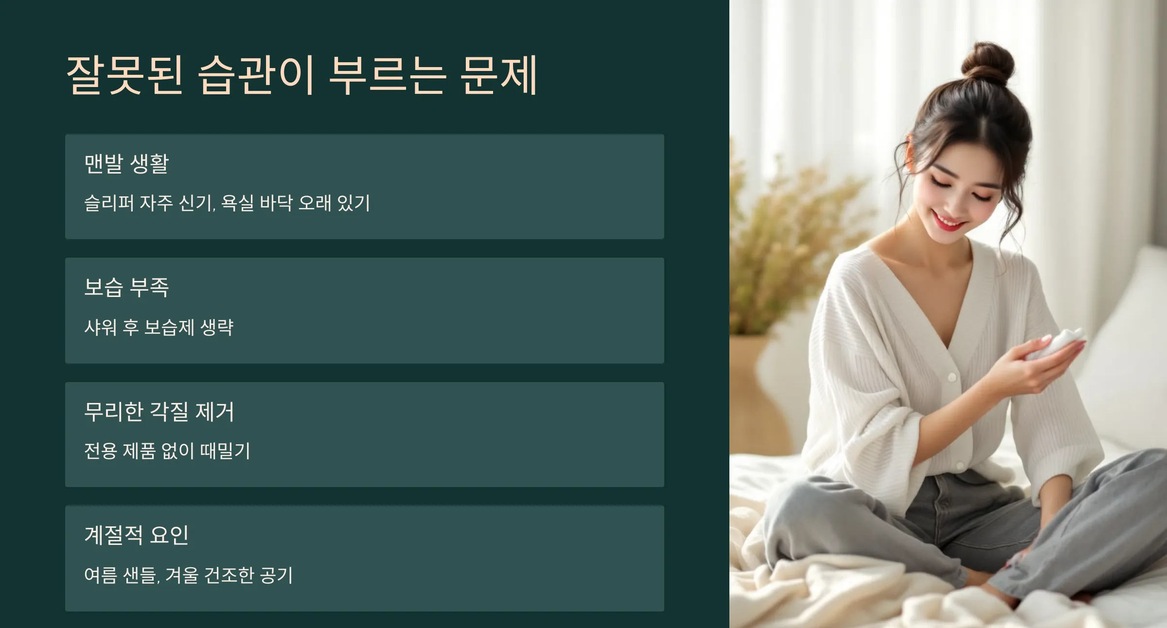 생각보다 많은 분들이 갈라짐을 유발하는 생활 습관을 가지고 있어요: