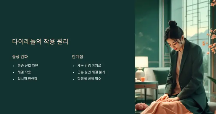 타이레놀은 증상을 잠시 가릴 뿐, 염증의 원인을 해결하지 못하기 때문에 절대 ‘치료제’로 오해해서는 안 됩니다. 🏥