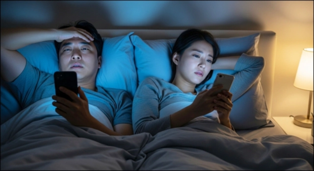일·대인관계·가정 문제로 인한 정신적 긴장이 지속되면 쉽게 잠에 들기 어렵습니다. - 블루라이트(스마트폰·TV) 과다 노출