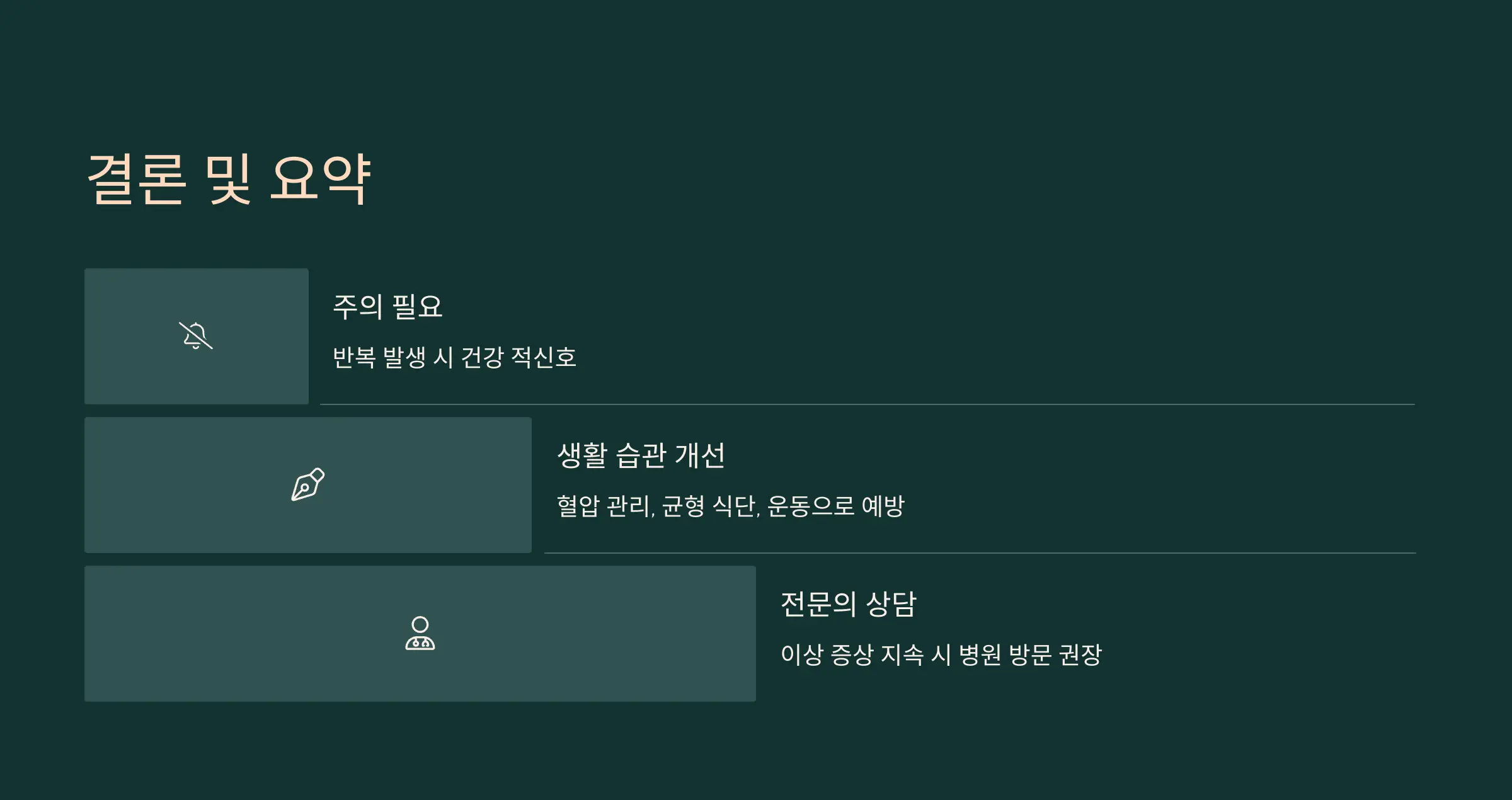- 동반 증상(어지러움, 피로감 등)이 있을 때