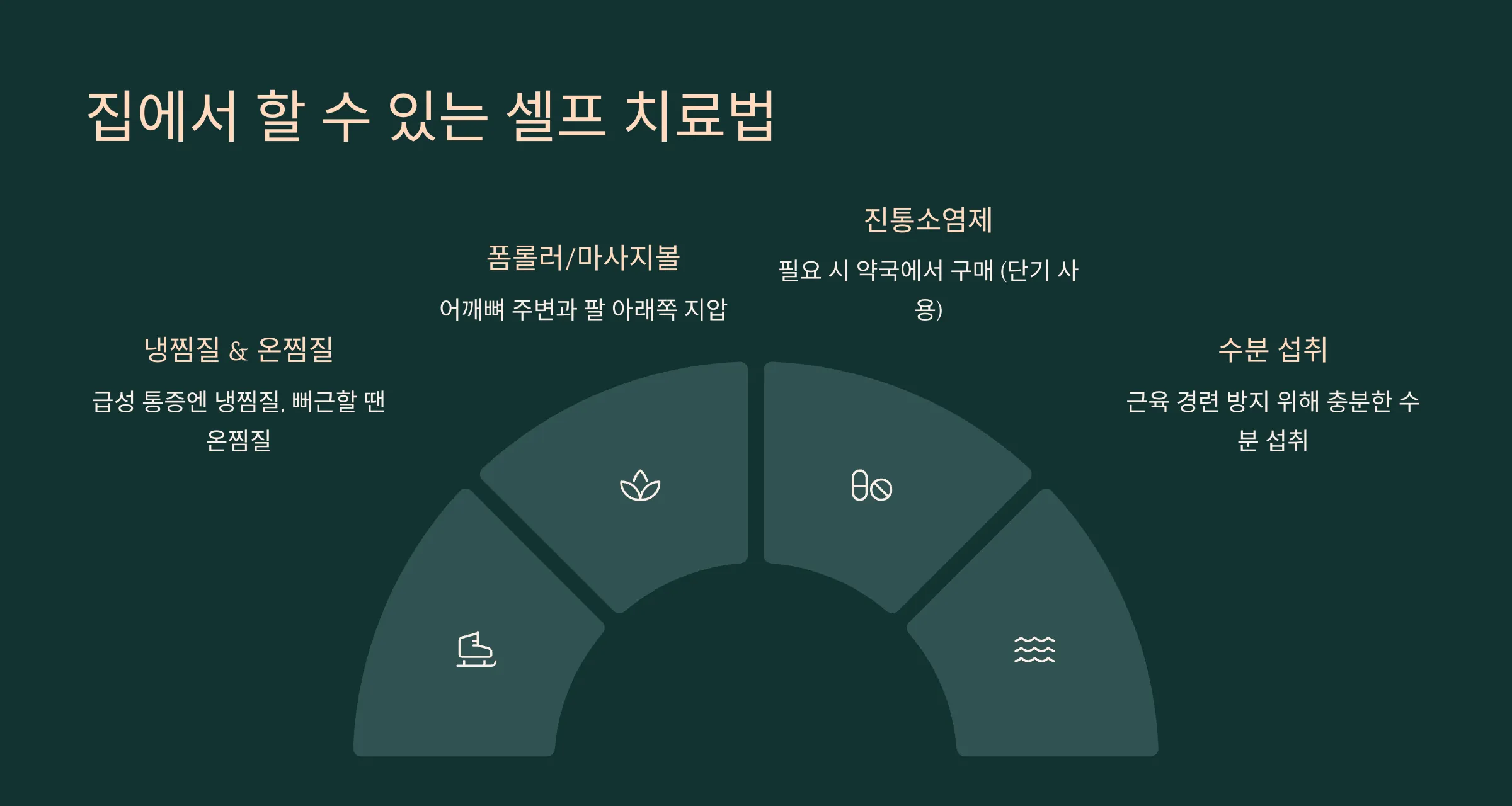 - 🧊 냉찜질 & 온찜질 병행: 급성 통증엔 냉찜질, 뻐근할 땐 온찜질