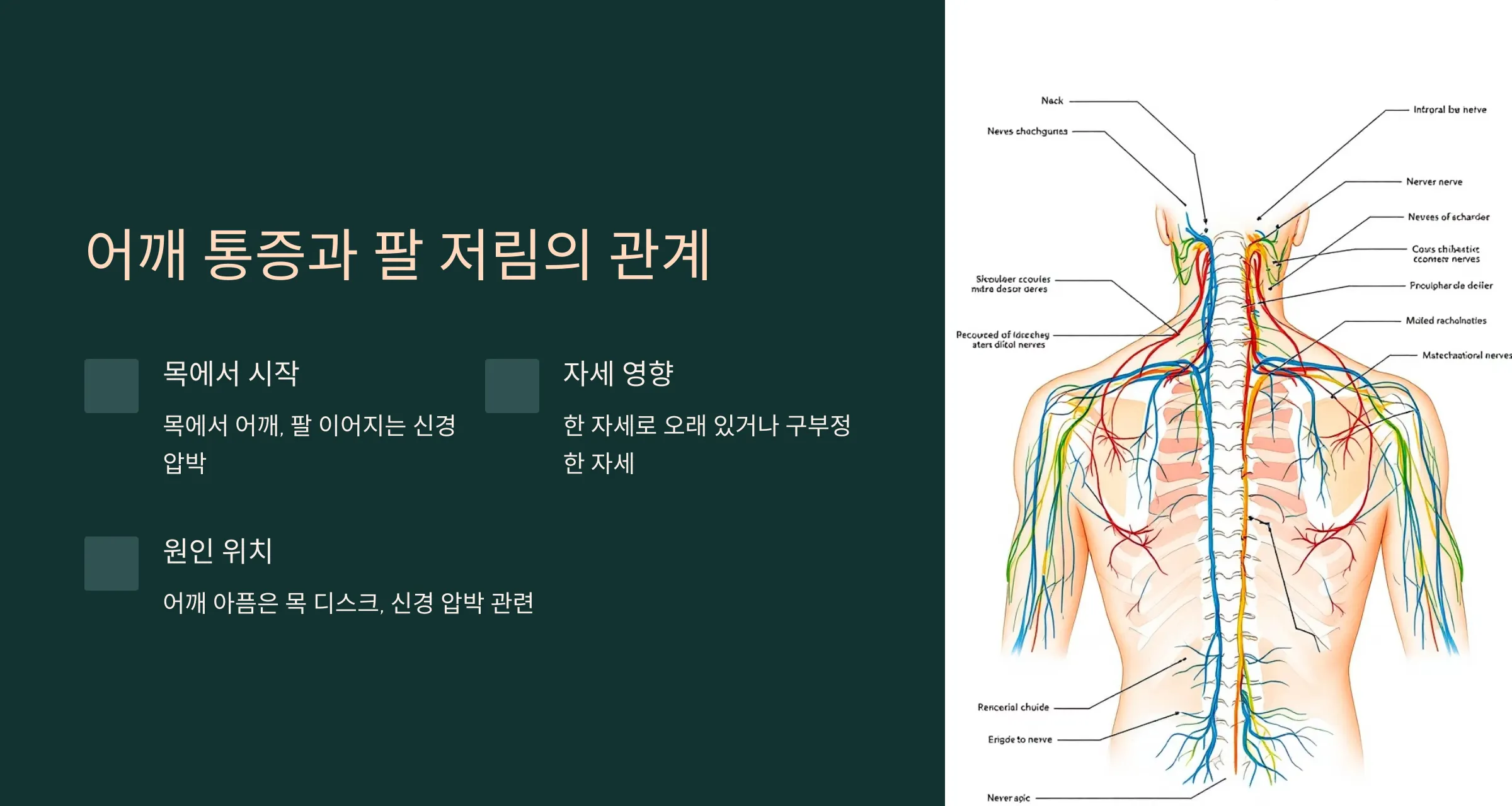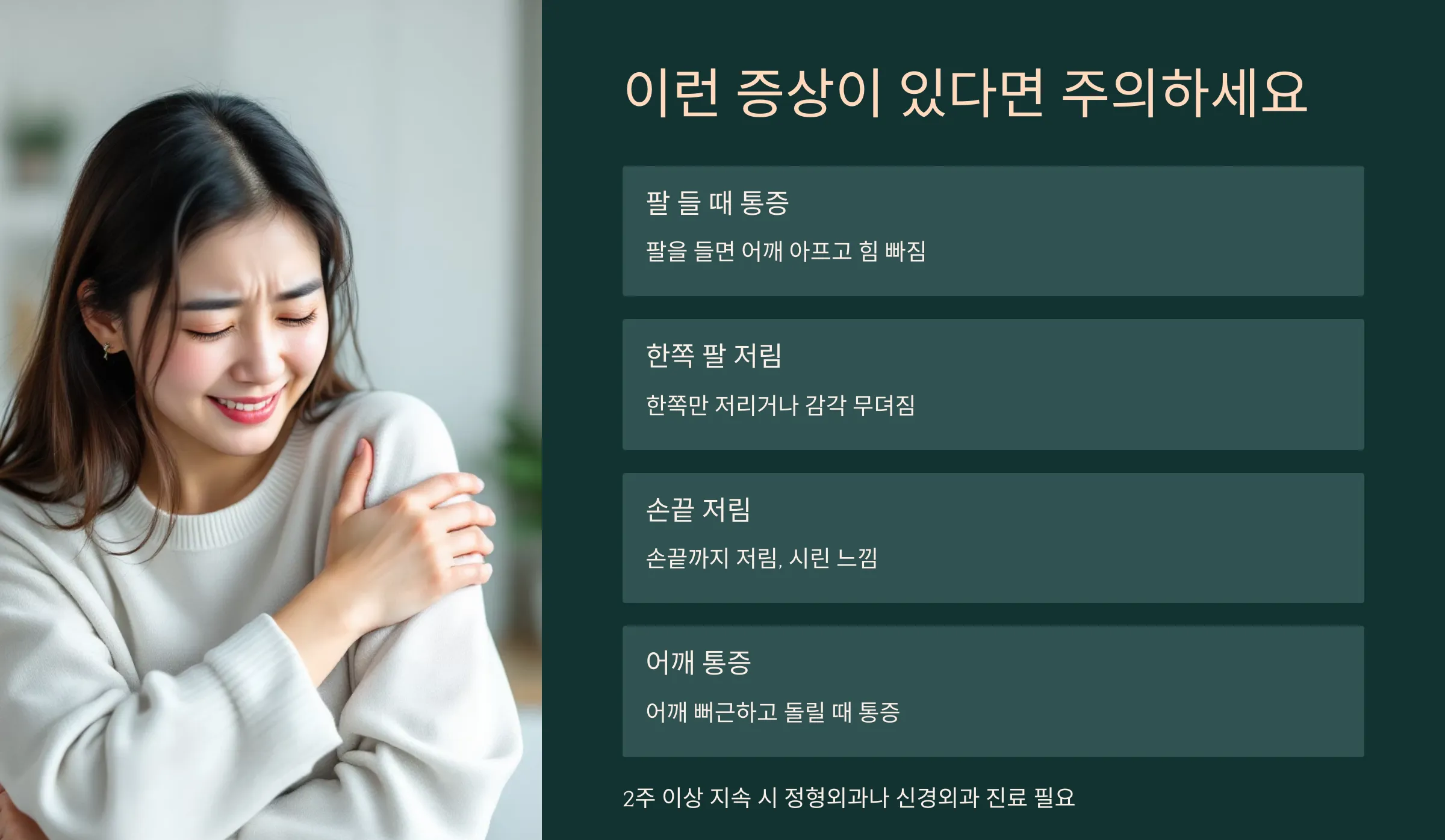팔 저림이나 어깨 통증이 단순 근육통이 아니라 신경 문제일 수 있는 대표 증상입니다: