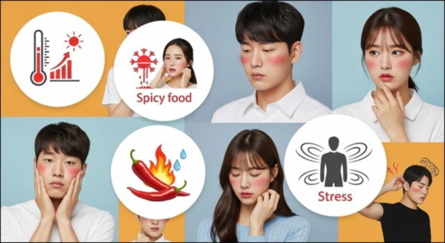 얼굴 홍조는 다양한 자극에 의해 발생합니다.