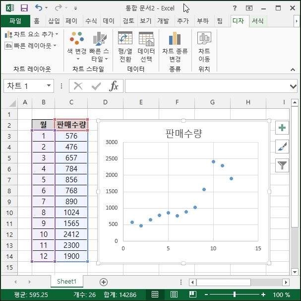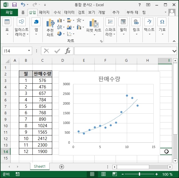 간단한 샘플을 준비했습니다. 월별 판매수량이 나오는데요.