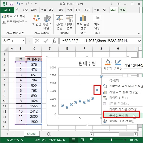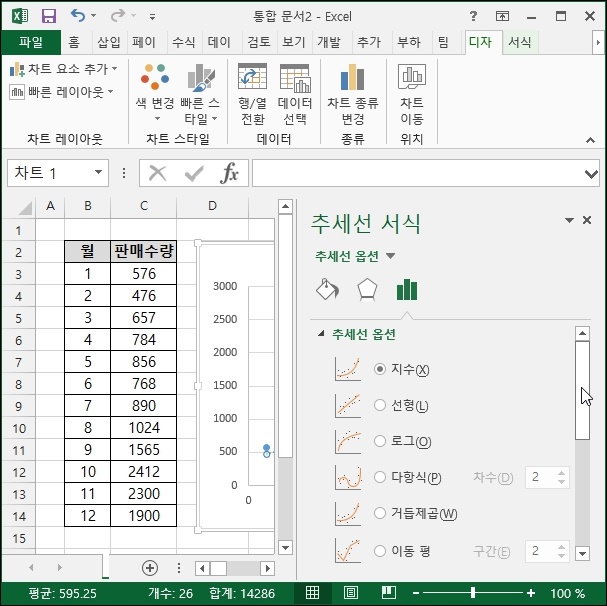 추세선 옵션이 나오는데요. 오피스 버전별로 나오는 형식이 다릅니다.