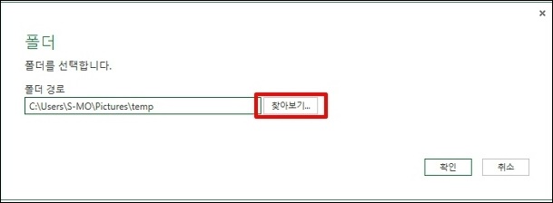 폴더 선택 창이 나타납니다. 찾아보기 버튼을 클릭하고 원하는 폴더를 선택합니다.