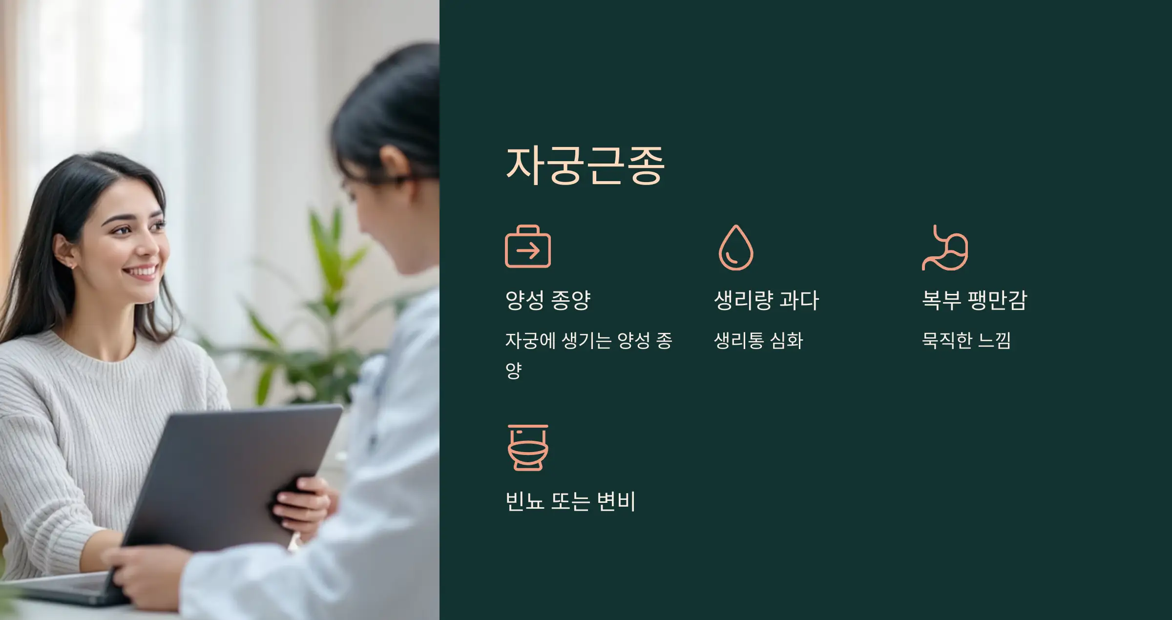 가장 흔한 여성 질환 중 하나인 자궁근종은 자궁에 생기는 양성 종양입니다.