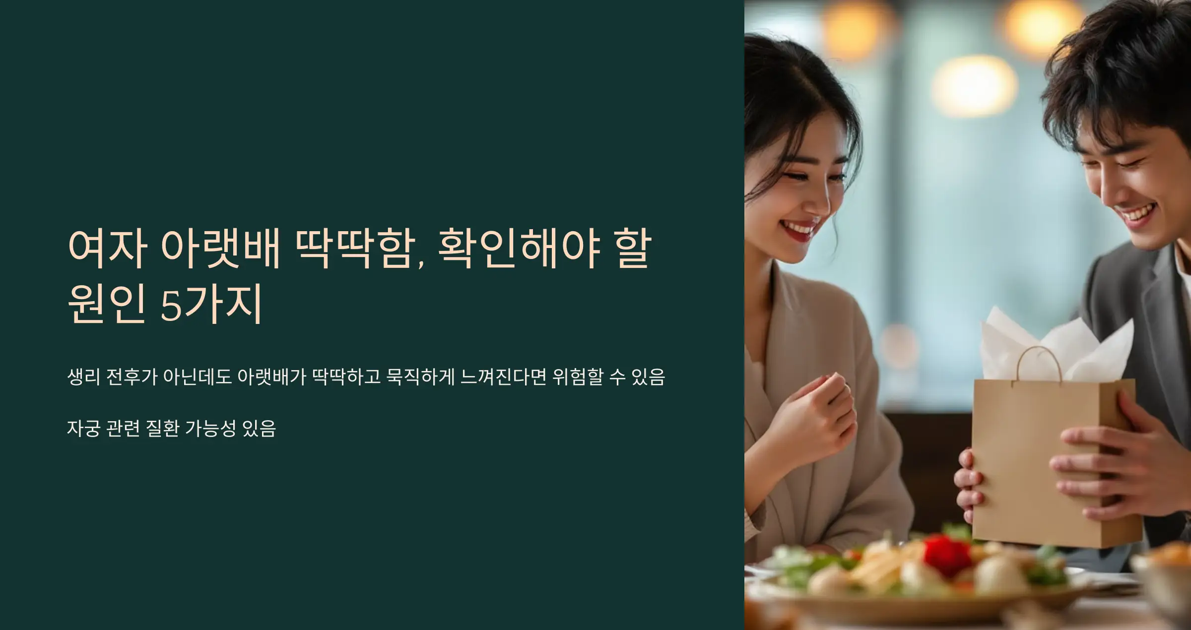 오늘은 여자 아랫배가 딱딱해졌을 때 꼭 확인해야 할 5가지 주요 원인에 대해 알려드릴게요.