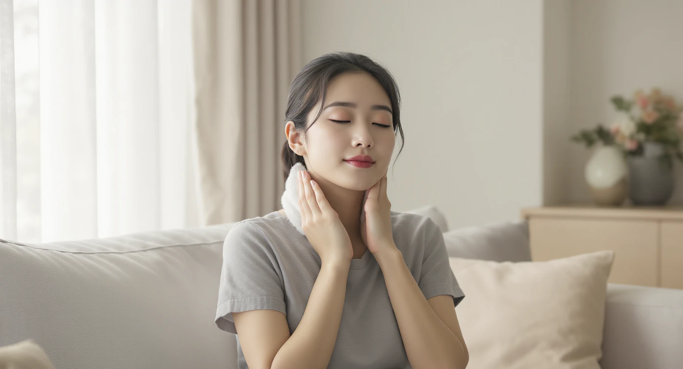 4️⃣ 온찜질 — 근육 긴장 완화에 도움 (목, 어깨 중심으로)