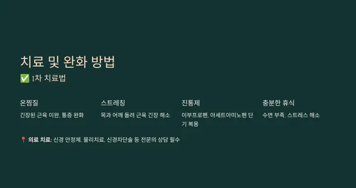 📍 의료 치료가 필요한 경우, 전문의는 신경 안정제나 물리치료, 주사치료(신경차단술) 등을 시행할 수 있습니다.