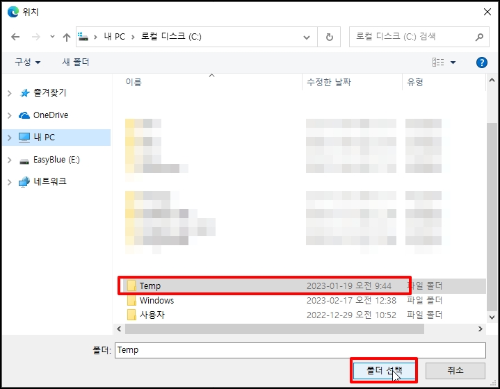 위치 탐색기 창이 열리면 변경하고자 하는 경로를 선택 후 [확인] 버튼을 클릭하시면 됩니다.