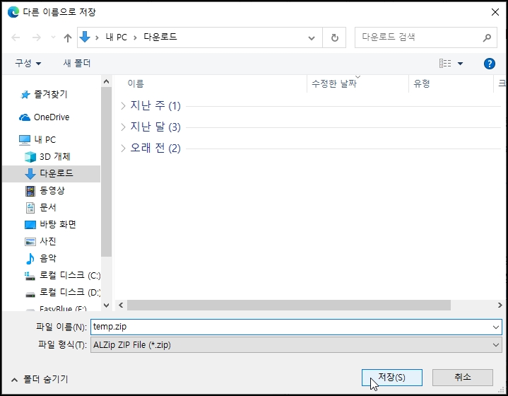 다운로드 시 탐색기 경로 창이 열리고 기본 다운로드 경로가 지정됩니다.