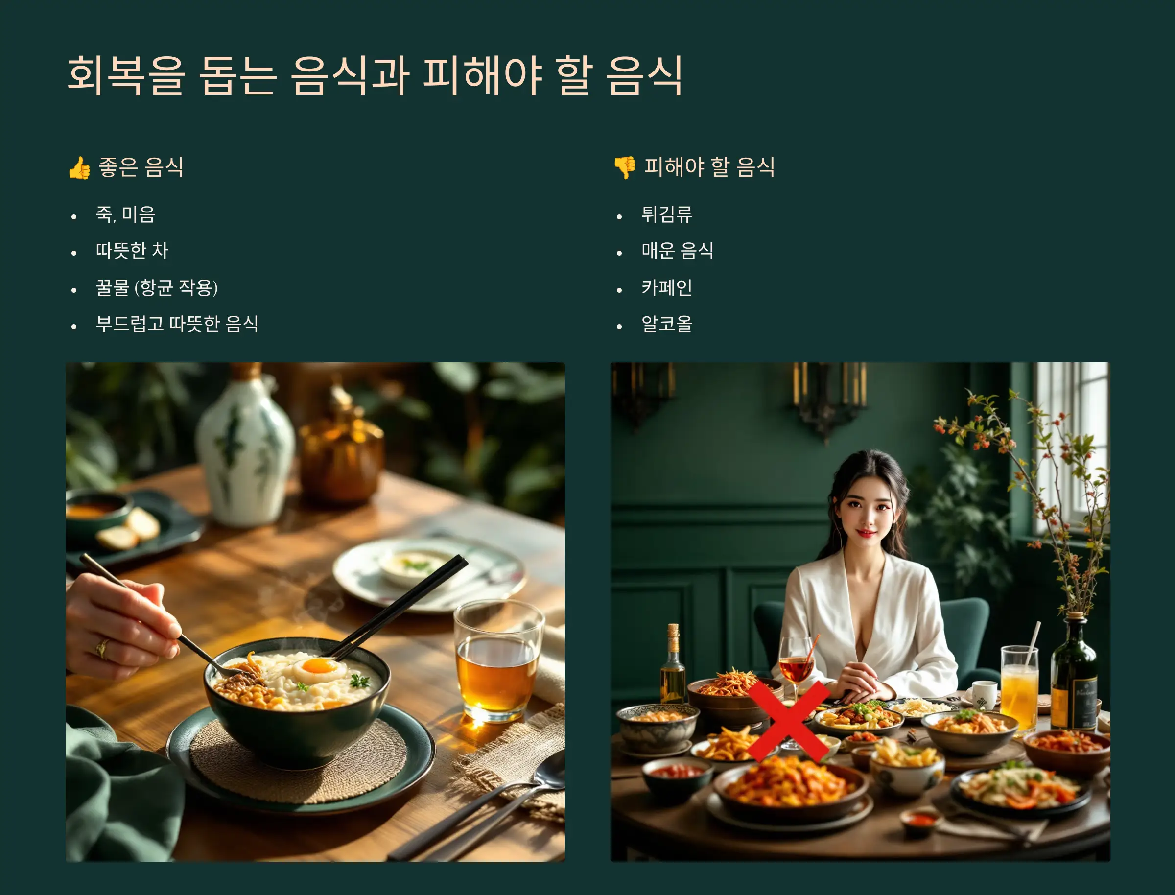 - 회복을 돕는 음식과 피해야 할 음식