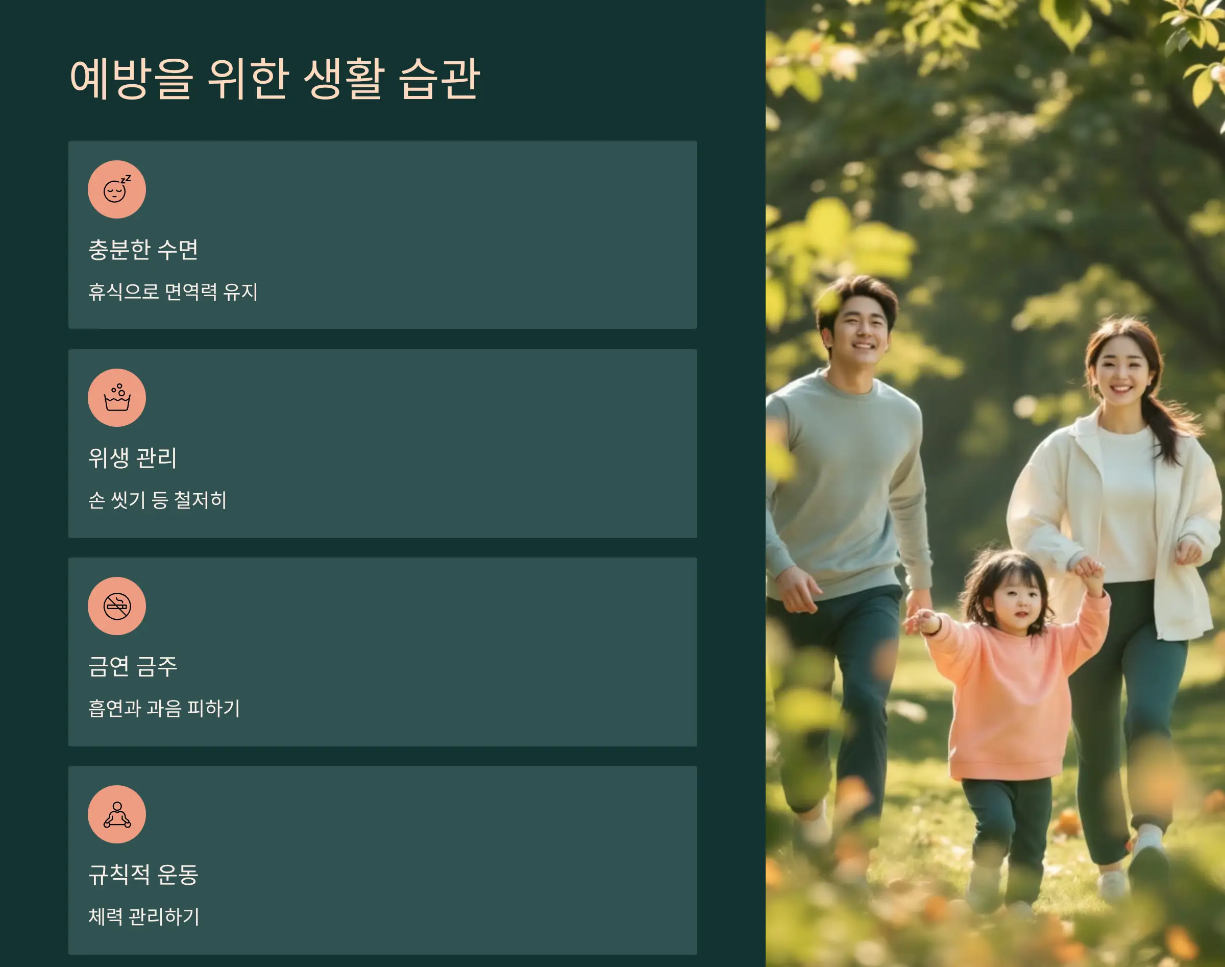 - 충분한 수면과 휴식으로 면역력 유지하기