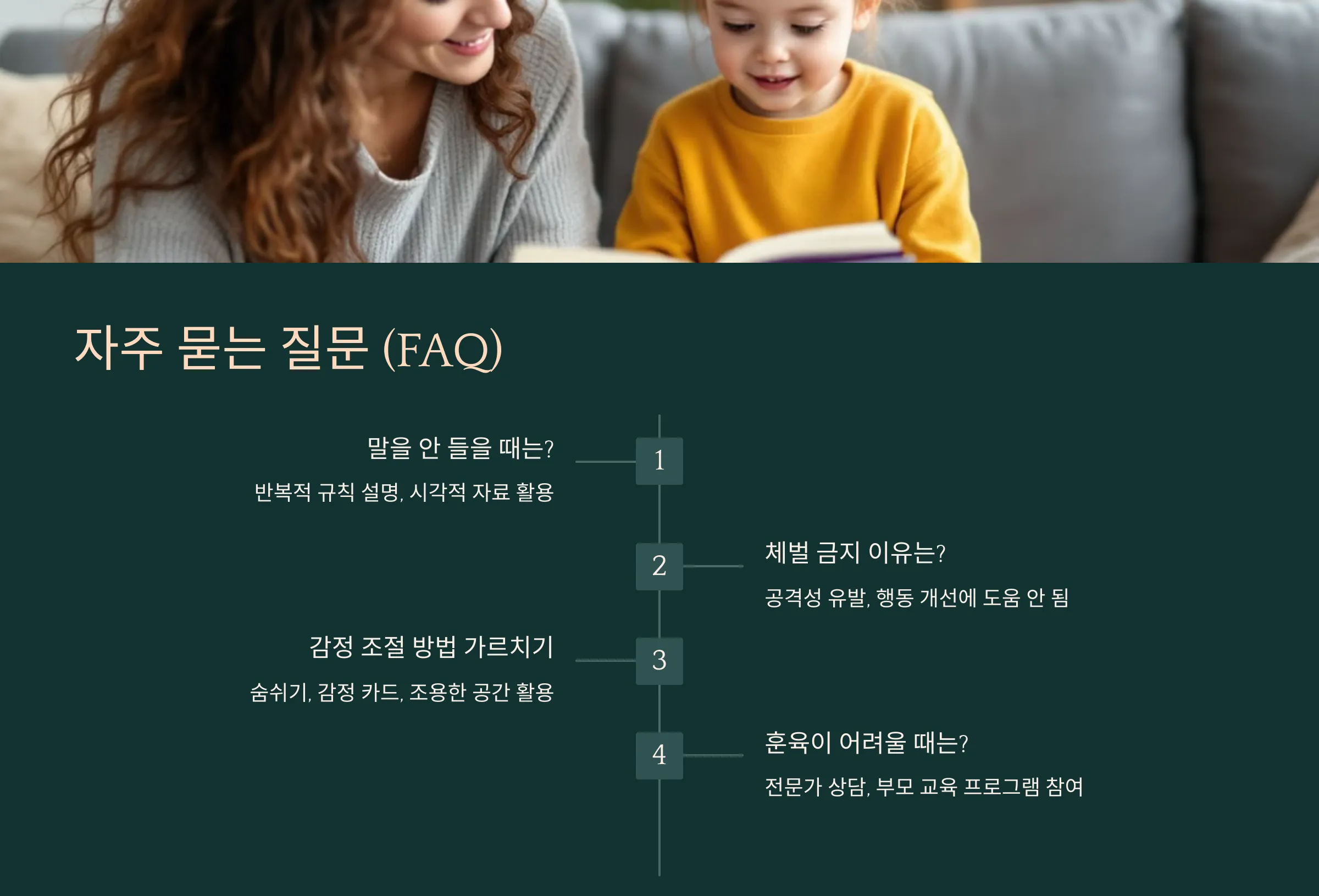 ✅ 훈육이 어려워 스트레스가 심할 경우, 전문가의 도움을 받는 것도 좋은 방법입니다.