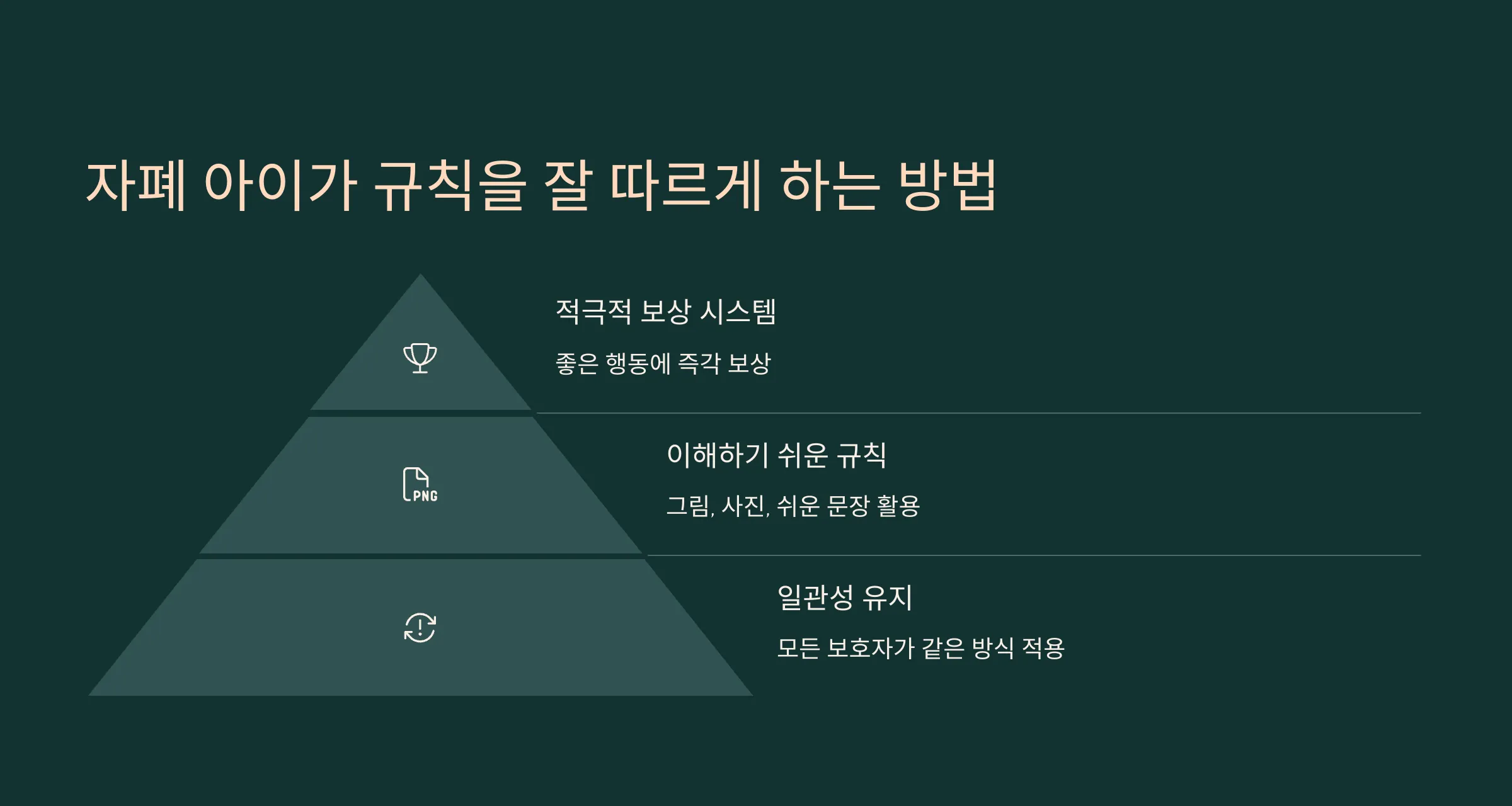 👉 "이 행동은 안 돼. 항상 이렇게 해야 해." (일관된 규칙 적용)